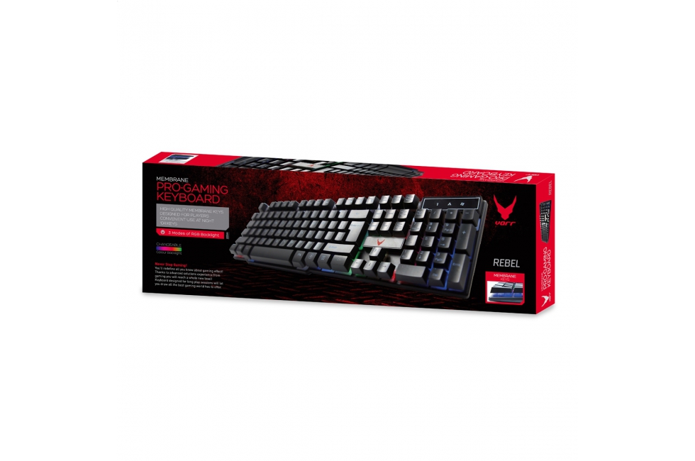 Ενσύρματο πληκτρολόγιο παιχνιδιού με οπίσθιο φωτισμό RGB. ΤΑ ΣΗΜΑΝΤΙΚΌΤΕΡΑ ΧΑΡΑΚΤΗΡΙΣΤΙΚΆ: - 3 τρόποι οπίσθιου φωτισμού RGB ΑΞΙΌΠΙΣΤΗ ΕΡΓΑΣΊΑ Το πληκτρολόγιο VARR REBEL έχει σχεδιαστεί για παίκτες και απαιτητικούς χρήστες. Τα ανθεκτικά και άνετα πλήκτρα παρέχουν άνεση στο υψηλότερο επίπεδο και το σύστημα που αποτρέπει τον αποκλεισμό τους σάς επιτρέπει να χρησιμοποιείτε οποιονδήποτε συνδυασμό συντομεύσεων. ΑΠΟΤΕΛΕΣΜΑΤΙΚΟΣ ΟΠΊΣΘΙΟς ΦΩΤΙΣΜΌς RGB Το πληκτρολόγιο διαθέτει πολύχρωμο οπίσθιο φωτισμό που λειτουργεί σε τρεις διαφορετικές λειτουργίες. Φαίνεται εντυπωσιακό, προσθέτει δυναμική στα παιχνίδια και, πάνω απ 'όλα, σας επιτρέπει να χρησιμοποιήσετε το πληκτρολόγιο και στο σκοτάδι. Ο χρήστης έχει επίσης την επιλογή να απενεργοποιήσετε εντελώς τον οπίσθιο φωτισμό. ΣΤΕΡΕΗ ΚΑΤΑΣΚΕΥΗ Το πληκτρολόγιο αποτελείται από το υψηλής ποιότητας πλαστικό που είναι φορτίο ανθεκτικό και ΤΕΧΝΙΚΕΣ ΠΡΟΔΙΑΓΡΑΦΕΣ Πληκτρολόγιο μεμβράνης, 104 πλήκτρα |
