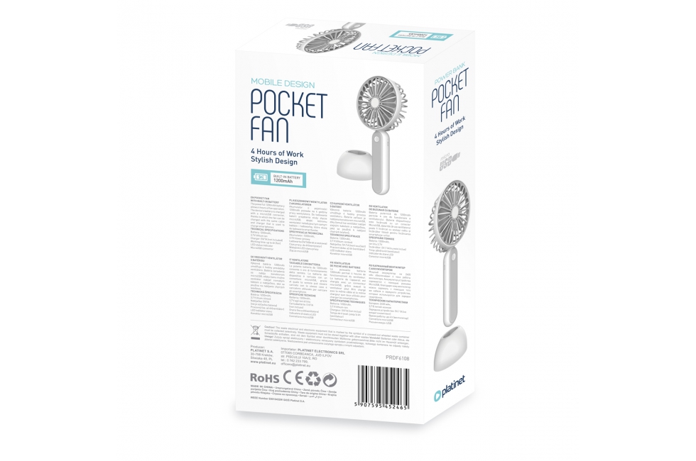 Περιγραφή ΒΑΣΙΚΑ ΧΑΡΑΚΤΗΡΙΣΤΙΚΑ 4 ώρες εργασίας ΠΑΝΤΑ ΜΕ ANΕΣΗ Ο κινητός σχεδιασμός και η ενσωματωμένη μπαταρία θα σας επιτρέψουν να έχετε πάντα αυτόν τον ανεμιστήρα μαζί σας! Αυτό είναι ένα αναντικατάστατο gadget το καλοκαίρι - μπορεί να σας συνοδεύσει στη μετακίνηση, στην εργασία, στο σπίτι, με ποδήλατο, καθώς και κατά τη διάρκεια των διακοπών! ΧΡΟΝΟΣ ΧΡΟΝΟΣ ΧΡΟΝΟΣ Η ισχυρή μπαταρία 1200 mAh επιτρέπει 4 ώρες λειτουργίας του ανεμιστήρα. Η μπαταρία της συσκευής φορτίζεται με υποδοχή Micro USB, χάρη στην οποία ο ανεμιστήρας μπορεί να φορτιστεί με το ίδιο καλώδιο και φορτιστή που χρησιμοποιείται για τη φόρτιση των smartphones. ΤΕΧΝΙΚΕΣ ΠΡΟΔΙΑΓΡΑΦΕΣ Μπαταρία: 1200 mAh, ιόν λίθιο 3.7V |