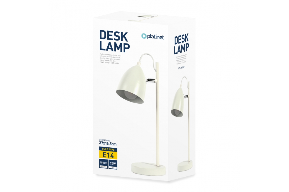 Platinet PDL2537W είναι ένας πρακτικός επιτραπέζιος λαμπτήρας, ο οποίος το περίβλημα και lampshade ήταν κατασκευασμένα από μέταλλο. Ιδανικό για μάθηση, καθώς και για υποτονικό, λεπτό εσωτερικό φωτισμό. ΒΑΣΙΚΑ ΧΑΡΑΚΤΗΡΙΣΤΙΚΑ Μεταλλική βάση και φανοισάντ ΤΕΧΝΙΚΕΣ ΠΡΟΔΙΑΓΡΑΦΕΣ Λαμπτήρες: E14, μέγιστη ισχύς. 25W (δεν περιλαμβάνεται) |