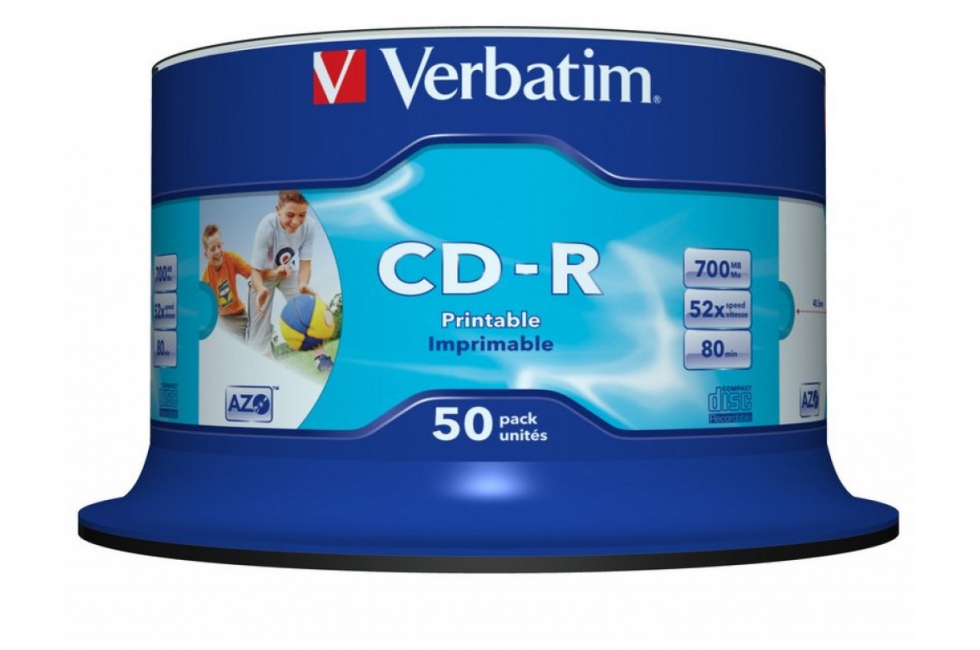 Verbatim 700MB Azo Printable CakeBox 50 Μάρκα: Verbatim Συσκευασία: Κορίνα Pack Size: 50 τεμάχια Χωρητικότητα: 700MB / 80min Ταχύτητα: 1-52x Format: CD-R (Εκτυπώσιμο)