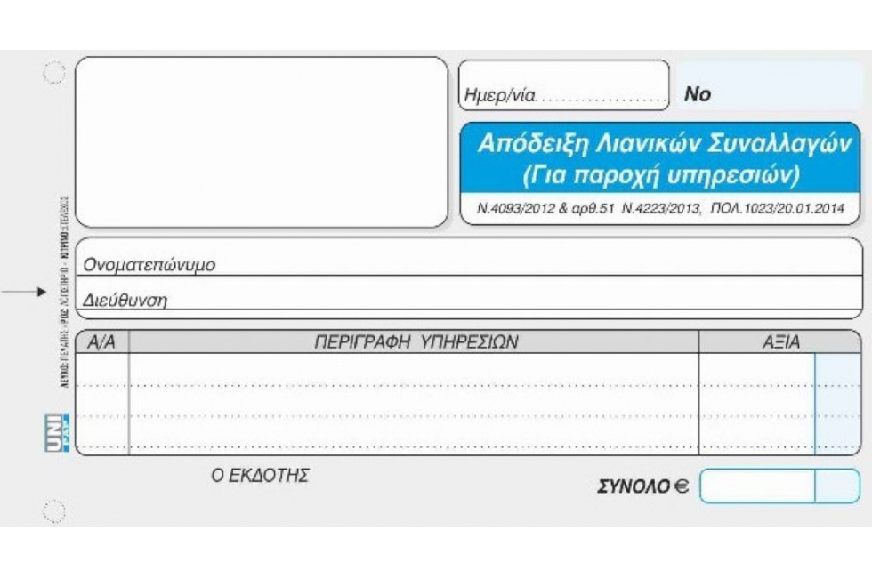 Χαρακτηριστικά Μπλο Απόδειξης Λιαν. Συναλλαγών Για Παραχή Υπηρεσιών Χωρίς Φ.Π.Α. 3τ (1-02-57)