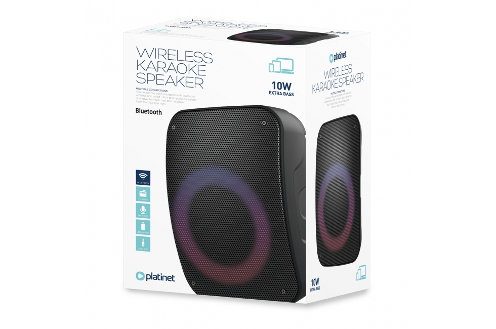Φορητό ηχείο Bluetooth ΒΑΣΙΚΆ ΧΑΡΑΚΤΗΡΙΣΤΙΚΆ Bluetooth 5.0 Η ΔΥΝΑΜΗ ΤΗς ΜΟΥΣΙΚΗΣ Το μοντέλο PMG250 είναι εξοπλισμένο με στερεά ηχεία συνολικής ισχύος 10W. Ως αποτέλεσμα, ο εκπεμπόμενος ήχος είναι δυνατός, σαφής, δυναμικός και εμπλουτισμένος με βαθύ μπάσο. ΛΕΙΤΟΥΡΓΊΑ ΚΑΡΑΌΚΕ Μπορείτε να γίνετε εργολάβος με PMG250. Η ενσωματωμένη υποδοχή μικροφώνου σάς επιτρέπει να συνδέσετε ένα μικρόφωνο. Μιλώντας, σιγοτραγουδώντας, τραγουδώντας - όλα αυτά θα μετατραπούν σε έναν δυνατό και καθαρό ήχο. ΦΩΤΙΣΜΌς LED Η μεμβράνη των ηχείων καλύπτεται με πολύχρωμο φωτισμό LED που προσαρμόζεται στη μουσική που αναπαράγεται. ΕΛΕΥΘΕΡΙΑ ΕΠΙΛΟΓΗΣ Το ηχείο Platinet PMG250 μπορεί να αναπαράλει μουσική ασύρματα - μέσω Bluetooth ή ενσύρματα - χάρη στον σύνδεσμο AUX, ο οποίος σας επιτρέπει να συνδέσετε οποιαδήποτε συσκευή μουσικής, π.χ.MP4 συσκευή αναπαραγωγής. Το μεγάφωνο σας επιτρέπει επίσης να αναπαράγετε μουσική από εξωτερικά μέσα αποθήκευσης - κάρτες μνήμης MicroSD και συσκευές Pendrive (σύνδεση USB). ΡΑΔΙΌΦΩΝΟ FM Ο ενσωματωμένος δέκτης FM σας επιτρέπει να ακούτε τους αγαπημένους σας ραδιοφωνικούς σταθμούς. ΣΕ ΟΠΟΙΟΔΉΠΟΤΕ ΜΈΡΟΣ Η ενσωματωμένη μπαταρία 1800 mAh σας επιτρέπει να τοποθετήσετε το ηχείο οπουδήποτε - χωρίς καλώδια και αναζητώντας μια ηλεκτρική πρίζα. ΤΕΧΝΙΚΕΣ ΠΡΟΔΙΑΓΡΑΦΕΣ Συνδεσιμότητα: Bluetooth 5.0 |