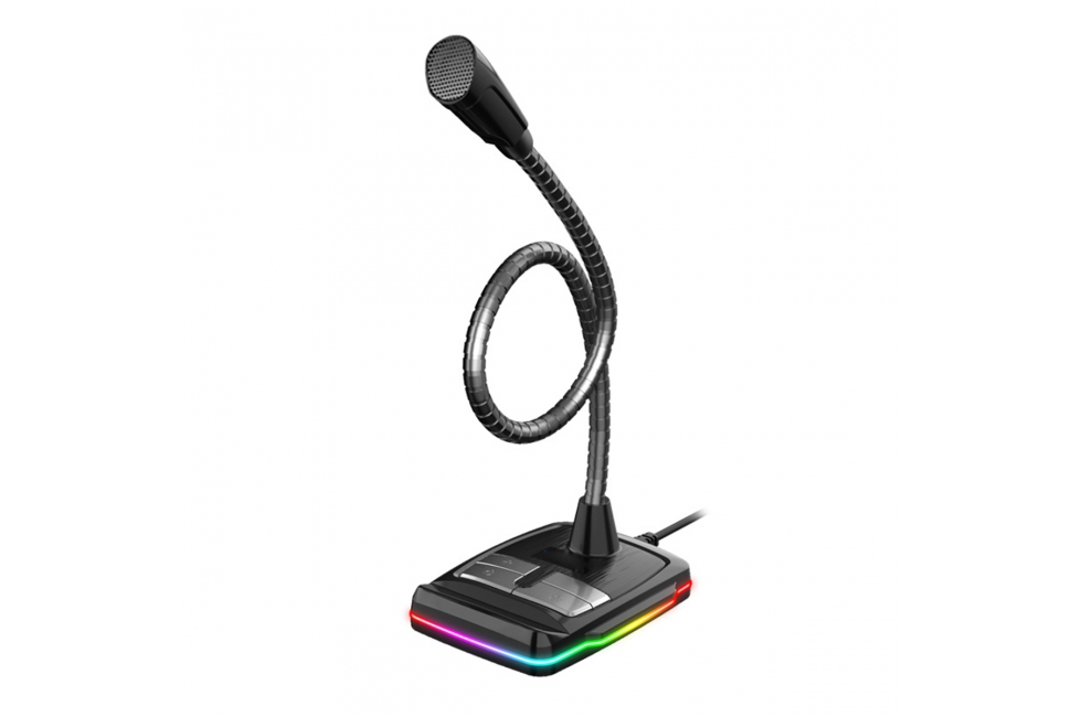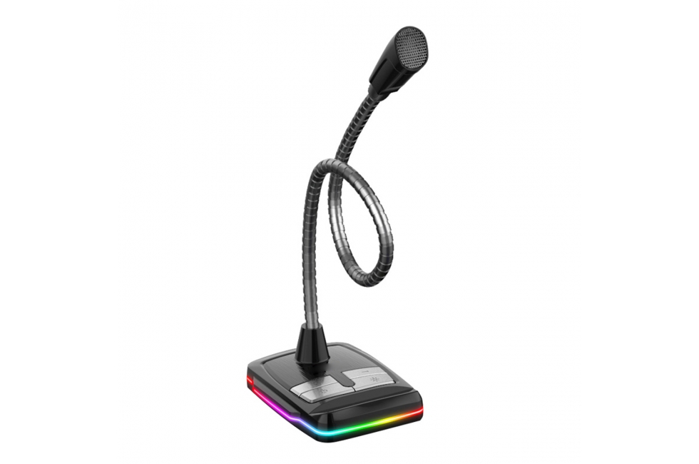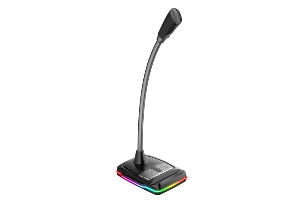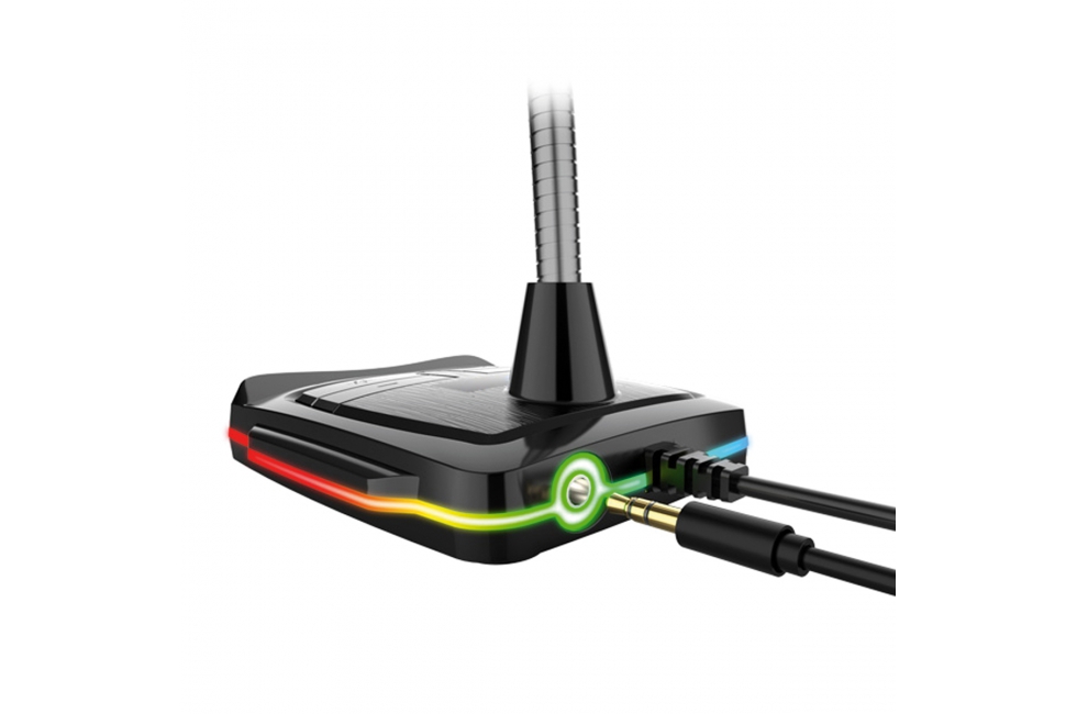 Περιγραφή Το μικρόφωνο είναι εύκολο στη χρήση χάρη στη λειτουργία Plug over Play. Απλά τοποθετήστε το βύσμα USB στην υποδοχή του φορητού υπολογιστή και λειτουργεί. Η κατασκευή του σας επιτρέπει να ρυθμίσετε τη γωνία στην περιοχή των 360 μοιρών, επιτρέποντάς σας να προσαρμόσετε τη θέση στις ατομικές ανάγκες. Ο πίνακας ελέγχου στο μπροστινό μέρος της συσκευής σας επιτρέπει να ενεργοποιήσετε ή να ενεργοποιήσετε εύκολα ή γρήγορα το mukrophone, να αλλάξετε την ένταση ή τη στάθμη του οπίσθιου φωτισμού. Η βασική δομή χρησιμεύει επίσης ως κάτοχος τηλεφώνου. Η ενσωματωμένη κάρτα ήχου σάς επιτρέπει να συνδέσετε πρόσθετες συσκευές, όπως ακουστικά ή ηχεία. Ένα τσιπ υψηλής ποιότητας εξασφαλίζει εξαιρετική αντίληψη του ήχου, εξαλείφοντας το θόρυβο και τις παραμορφώσεις, καθώς και αποτρέποντας την ηχώ παρεμβολής. Μια επιπλέον αισθητική εμπειρία παρέχεται από τη φωτισμένη βάση, η οποία αλλάζει το χρώμα της στη χρωματική γκάμα RGB, καλύπτοντας τις ανάγκες των μεγαλύτερων αινιγμάτων. |