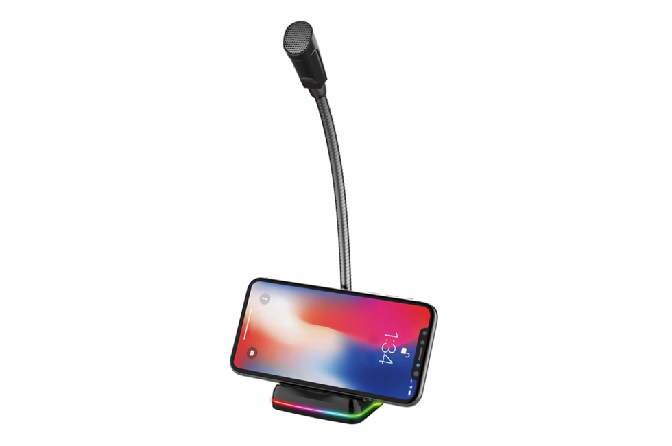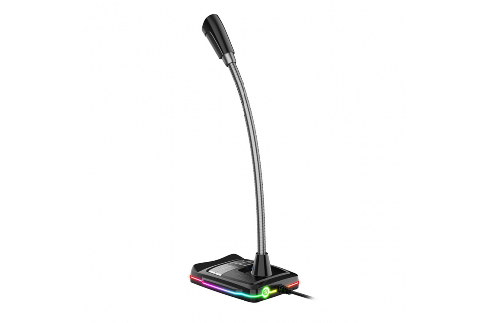 Περιγραφή Το μικρόφωνο είναι εύκολο στη χρήση χάρη στη λειτουργία Plug over Play. Απλά τοποθετήστε το βύσμα USB στην υποδοχή του φορητού υπολογιστή και λειτουργεί. Η κατασκευή του σας επιτρέπει να ρυθμίσετε τη γωνία στην περιοχή των 360 μοιρών, επιτρέποντάς σας να προσαρμόσετε τη θέση στις ατομικές ανάγκες. Ο πίνακας ελέγχου στο μπροστινό μέρος της συσκευής σας επιτρέπει να ενεργοποιήσετε ή να ενεργοποιήσετε εύκολα ή γρήγορα το mukrophone, να αλλάξετε την ένταση ή τη στάθμη του οπίσθιου φωτισμού. Η βασική δομή χρησιμεύει επίσης ως κάτοχος τηλεφώνου. Η ενσωματωμένη κάρτα ήχου σάς επιτρέπει να συνδέσετε πρόσθετες συσκευές, όπως ακουστικά ή ηχεία. Ένα τσιπ υψηλής ποιότητας εξασφαλίζει εξαιρετική αντίληψη του ήχου, εξαλείφοντας το θόρυβο και τις παραμορφώσεις, καθώς και αποτρέποντας την ηχώ παρεμβολής. Μια επιπλέον αισθητική εμπειρία παρέχεται από τη φωτισμένη βάση, η οποία αλλάζει το χρώμα της στη χρωματική γκάμα RGB, καλύπτοντας τις ανάγκες των μεγαλύτερων αινιγμάτων. |