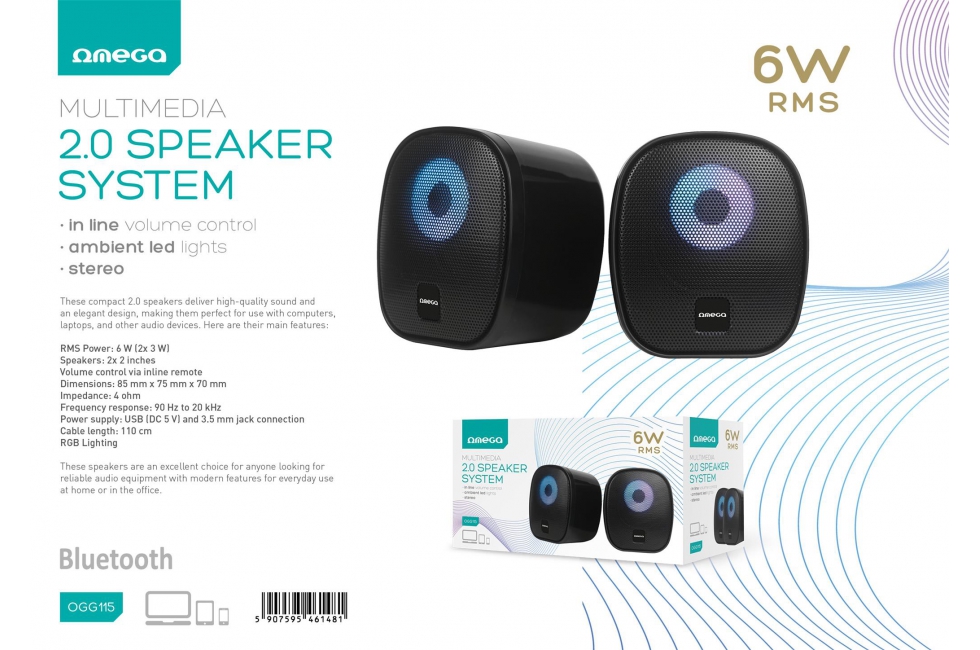 Περιγραφή Ηχεία Omega OGG115 Stereo 2.0 6W RGB Black