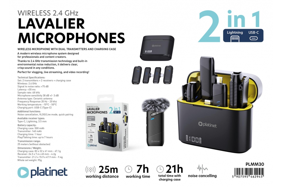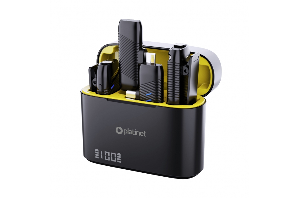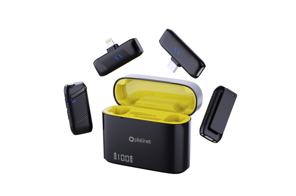 Wireless Microphone with Dual Transmitters and Charging Case |