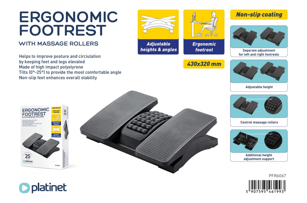 Χαρακτηριστικά PLATINET FOOTREST ERGONOMIC 430x320 2 LEVELS ADJUSTMENT BLACK